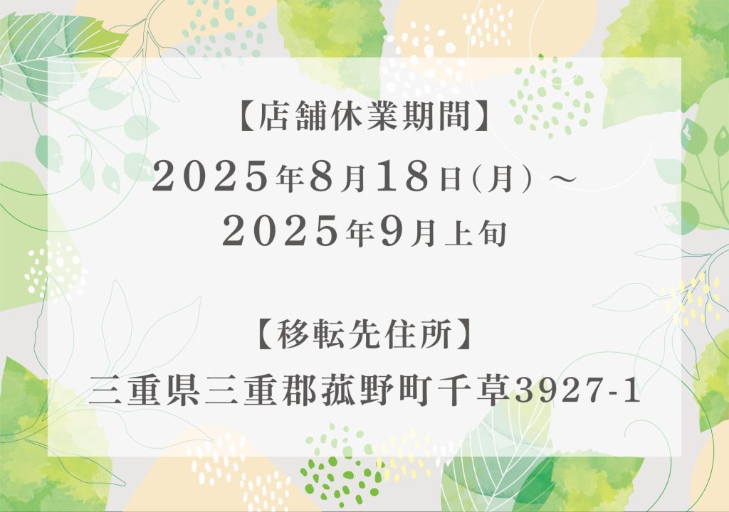 業務拡大に伴う店舗移転と、現店舗の休業予定のお知らせ